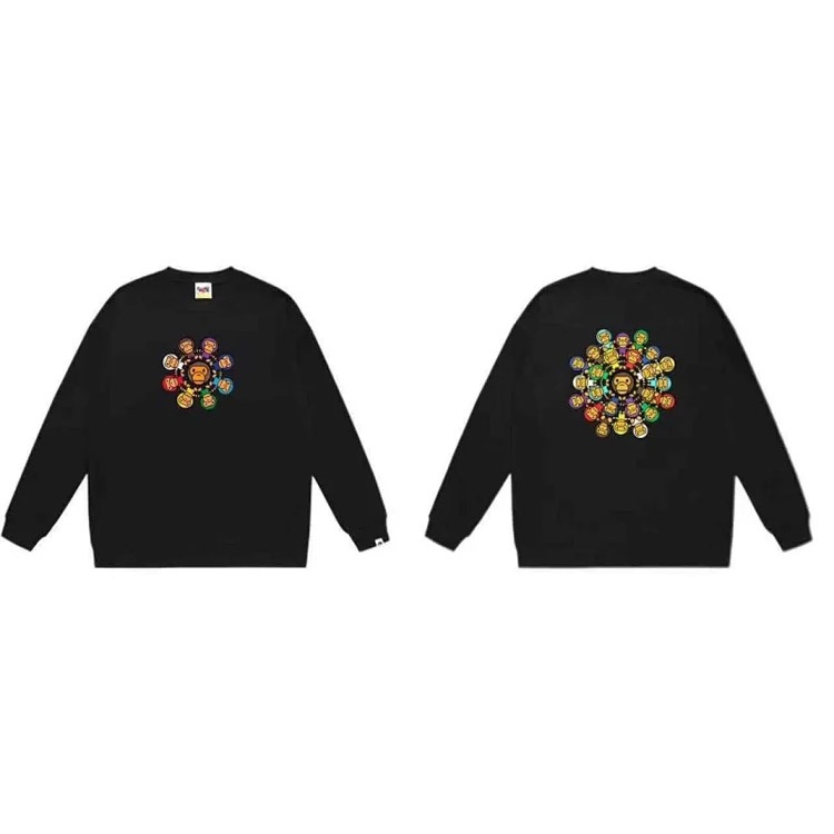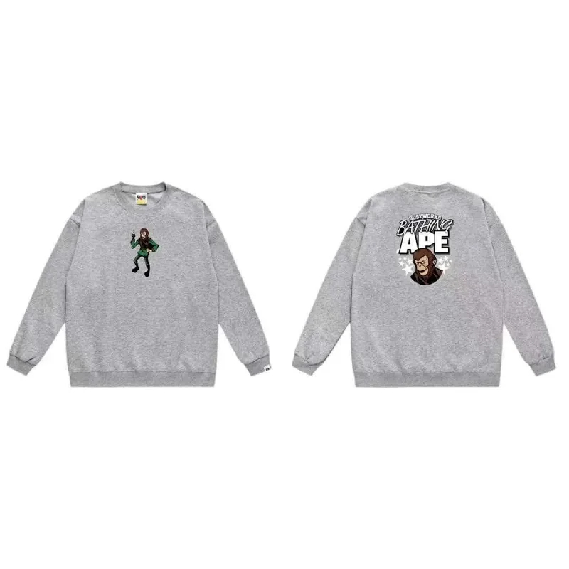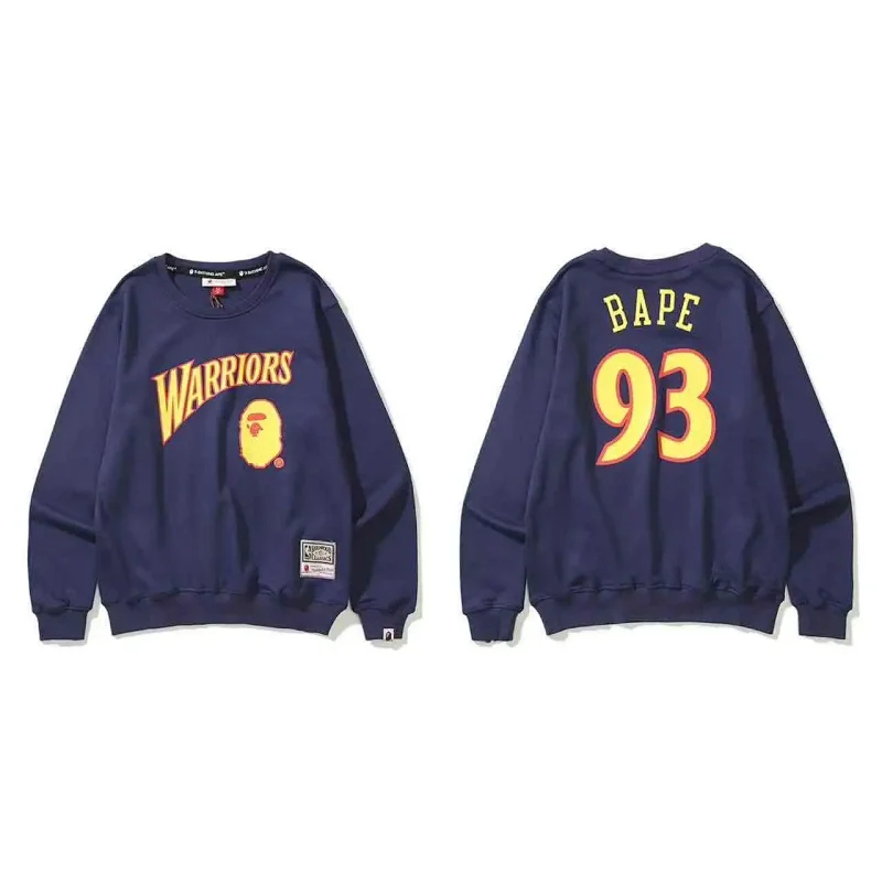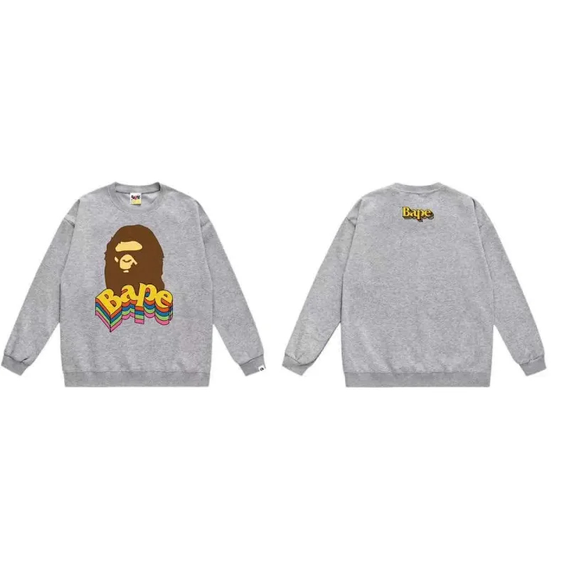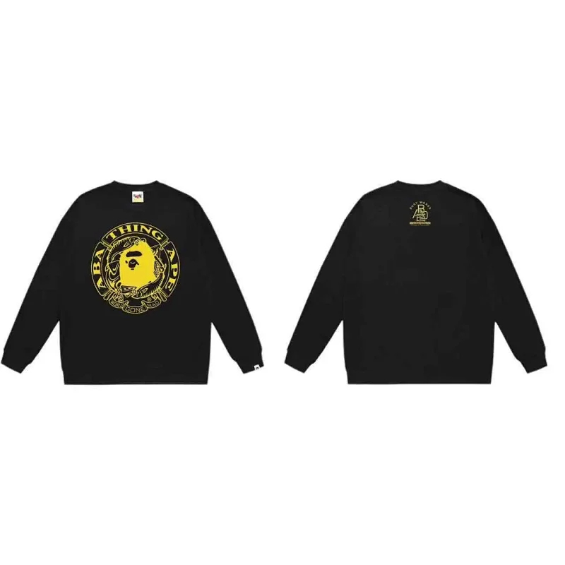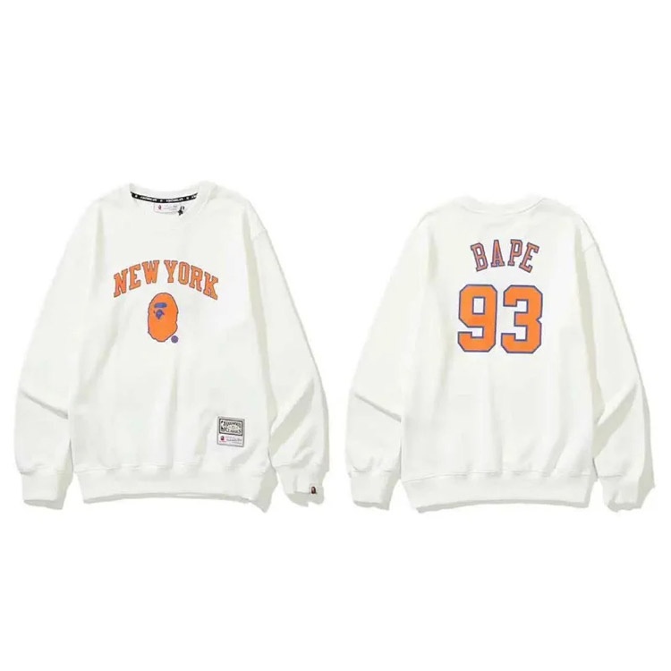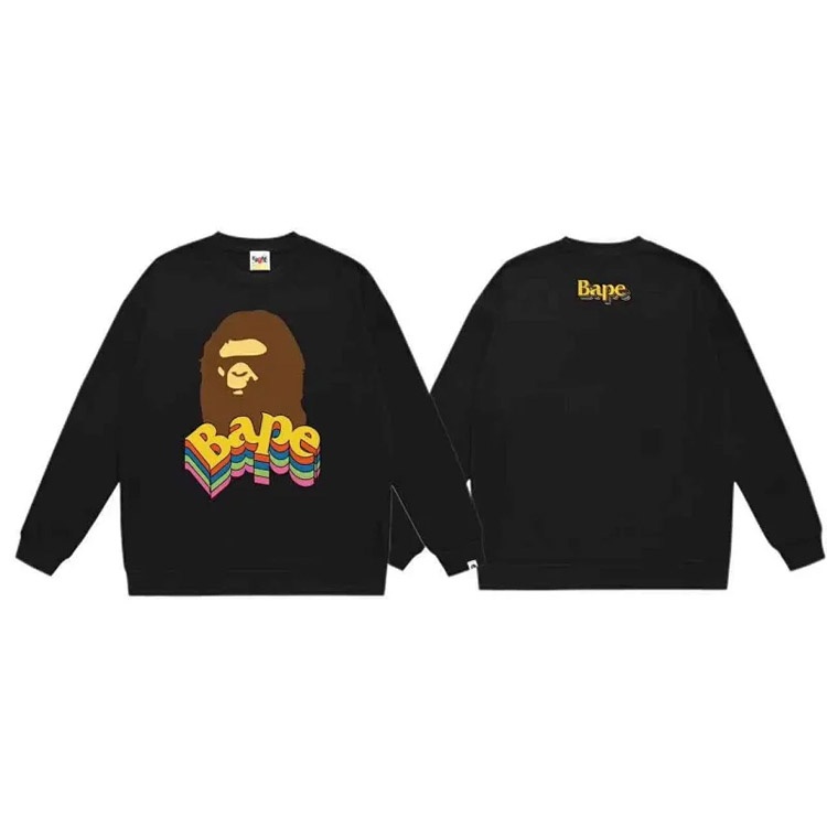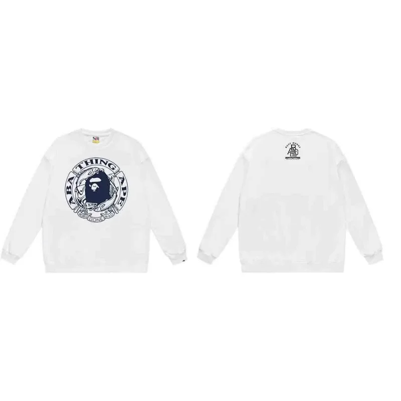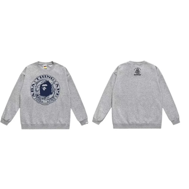 A BATHING APE BAPE Letter Embossed Crew Neck Pullover Sweatshirt-5146