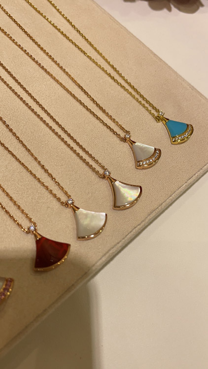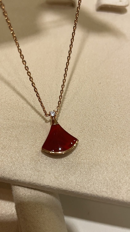 Home > Bulgari small fan diamond red agate rose gold necklace-3894