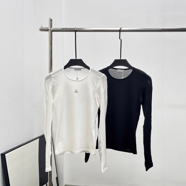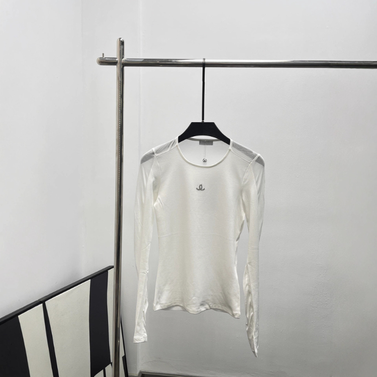Chanel new diamond-embellished letter design versatile slim-fit long-sleeved T-shirt-5303