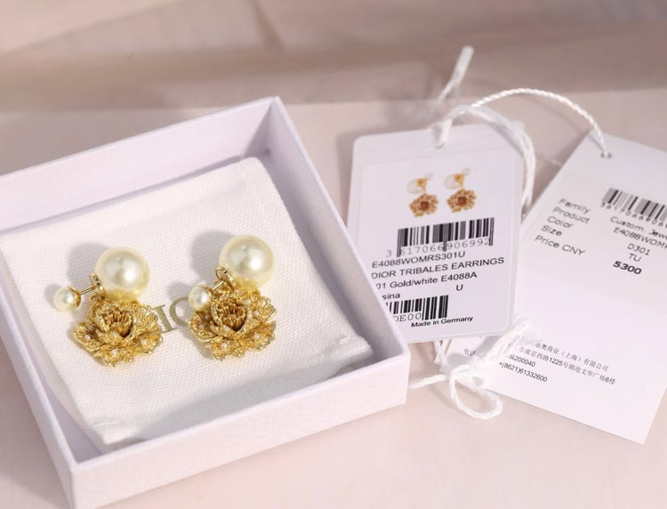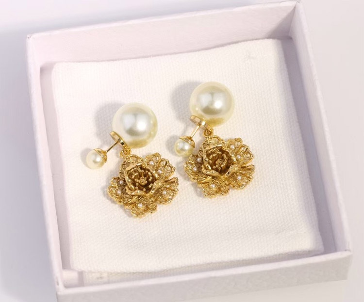 Dior large and small peony pearl earrings-3771