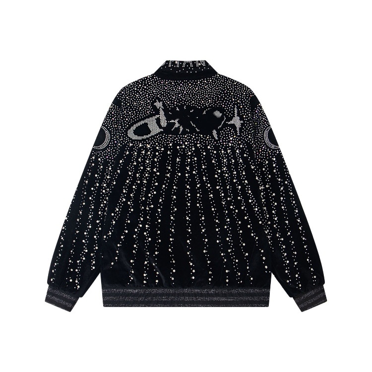 Dior new velvet baseball jacket with all-over hotfix rhinestone embellishments-5313