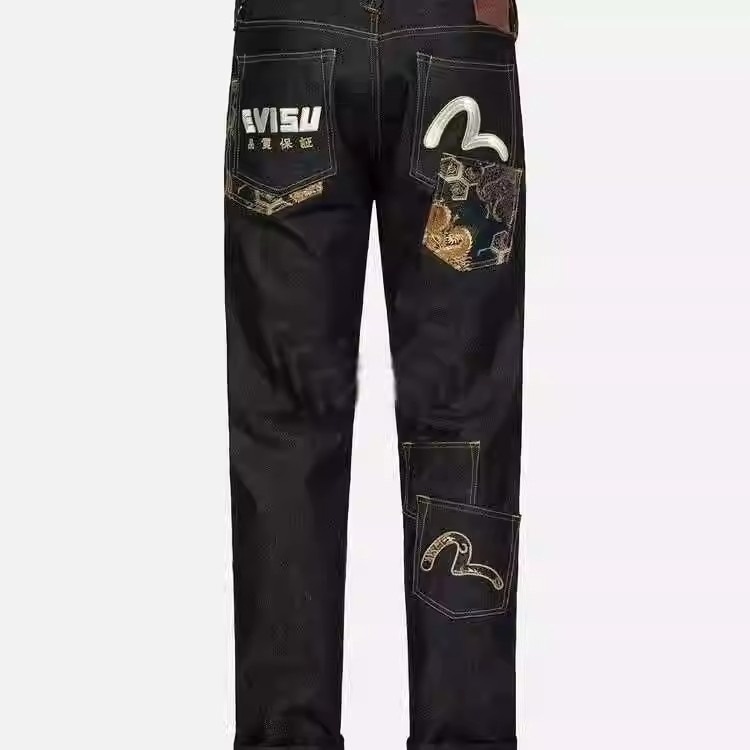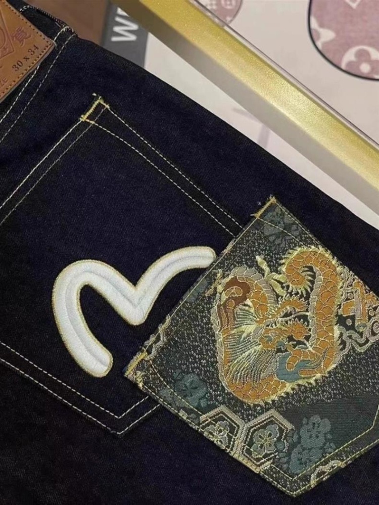EVISU new embroidered and printed washed denim jeans-5866