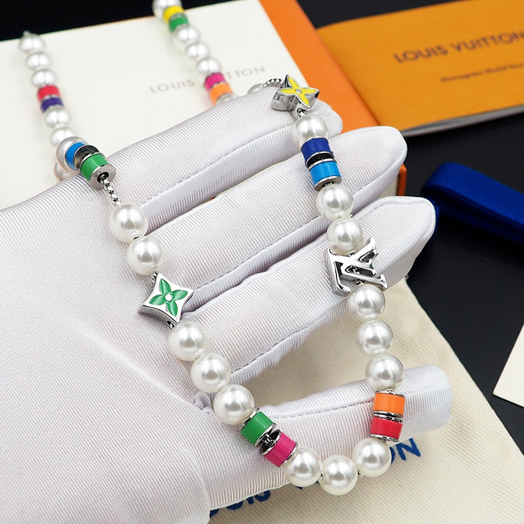 Louis Vuitton LV adjustable chain beaded floral letter necklace-4022