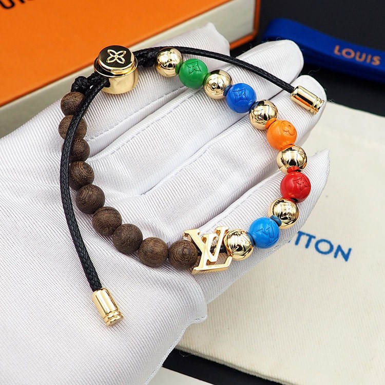 Louis Vuitton LV adjustable cord embellished wooden inscription metal beaded bracelet-3949