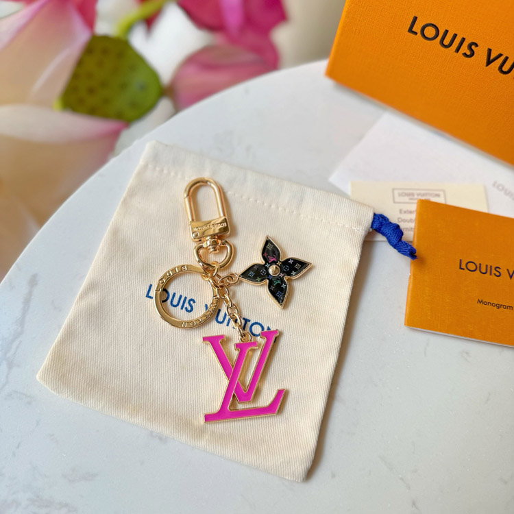 Louis Vuitton LV black tricolor old flower pink letter keychain-3761