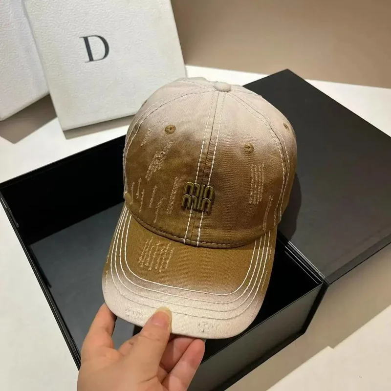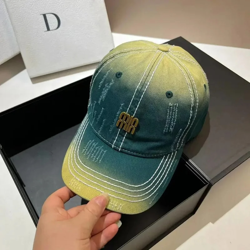 Miu Miu Distressed soft top denim cotton sun protection baseball cap-2728