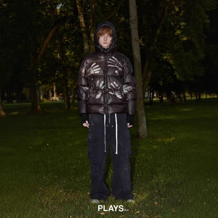 PLAYS Printed Warm Hooded Puffer Jacket-5127