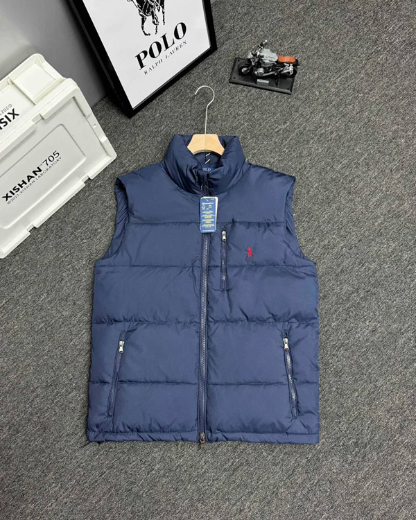 Polo Ralph Lauren Logo Embroidered Zipper Stand Collar Down Vest-4273