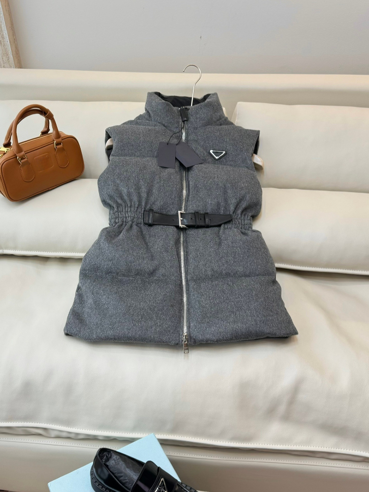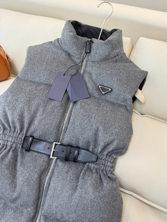 Prada new stand-collar down vest with logo and adjustable waist-5354