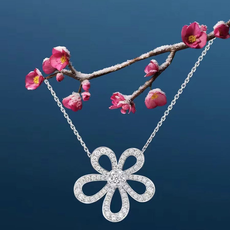 Van Cleef & Arpels platinum full diamond large flower sunflower necklace-3770