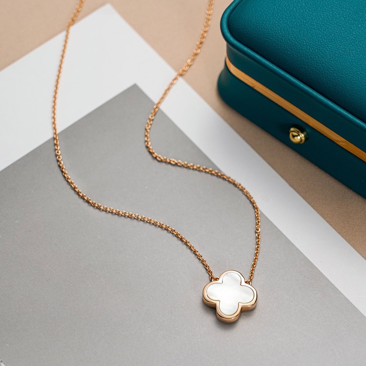 Van Cleef & Arpels White Mother-of-Pearl Black Agate Single and Double-Sided Flower Necklace-3883
