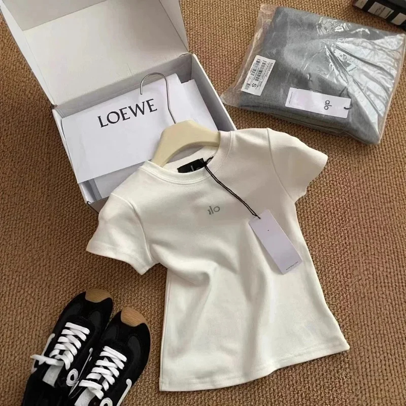 ALO 2025 new slim round neck solid color printed versatile T-shirt (4 styles)-2576