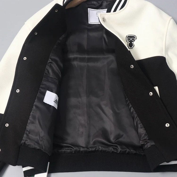 KARL LAGERFELD character badge stand collar zip-up long-sleeved down jacket-4267