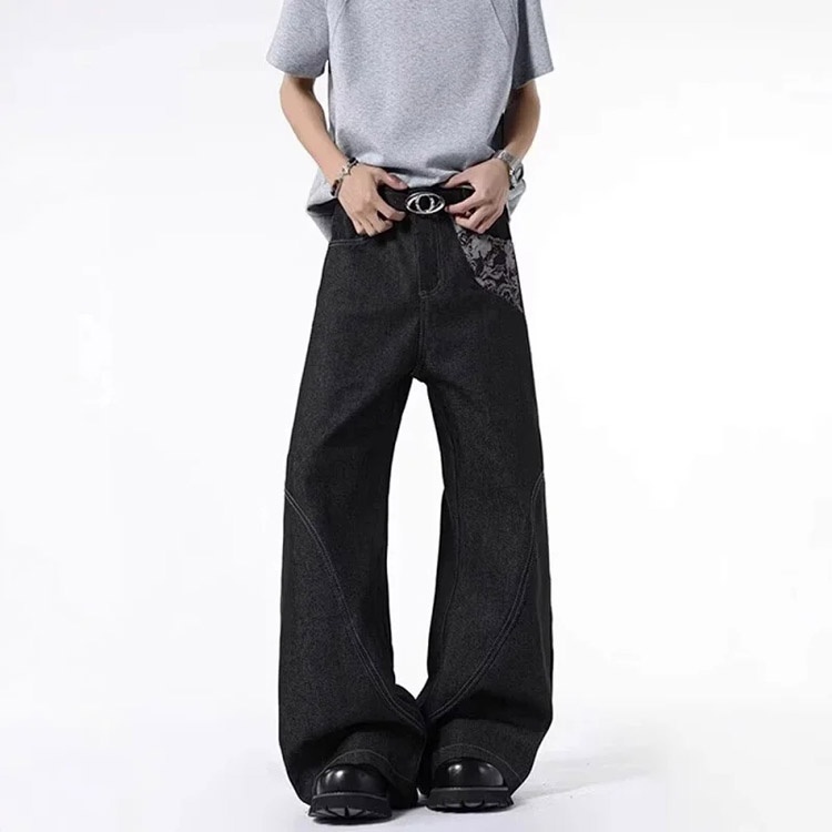 Onenin's new raw color jacquard wide-leg jeans-4904
