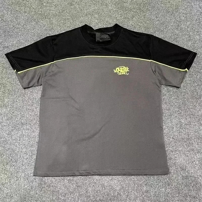 SynaWorld embroidered letter patchwork short-sleeved T-shirt shorts set-2789